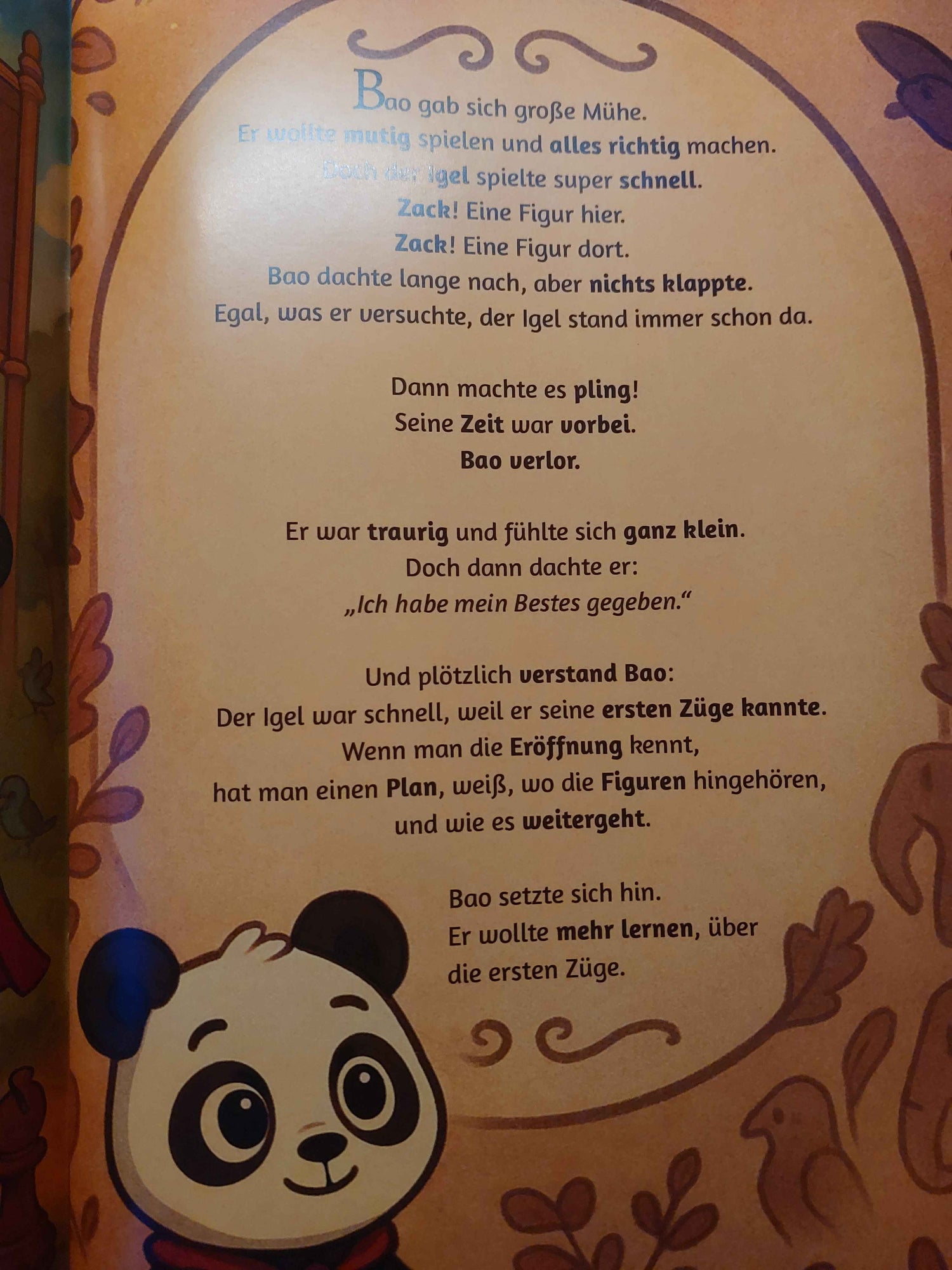 Die Theorie ist in eine Geschichte verpackt. Bao erklärt Figuren, Regeln und Ideen Schritt für Schritt. Kinder lernen durch Abenteuer, nicht durch trockene Theorie.